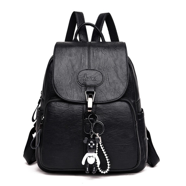 Black Soft Backpack Female Pu Leather Vintage Ladies Backpack Women Youth Bagpack for Teenage Girl Brown