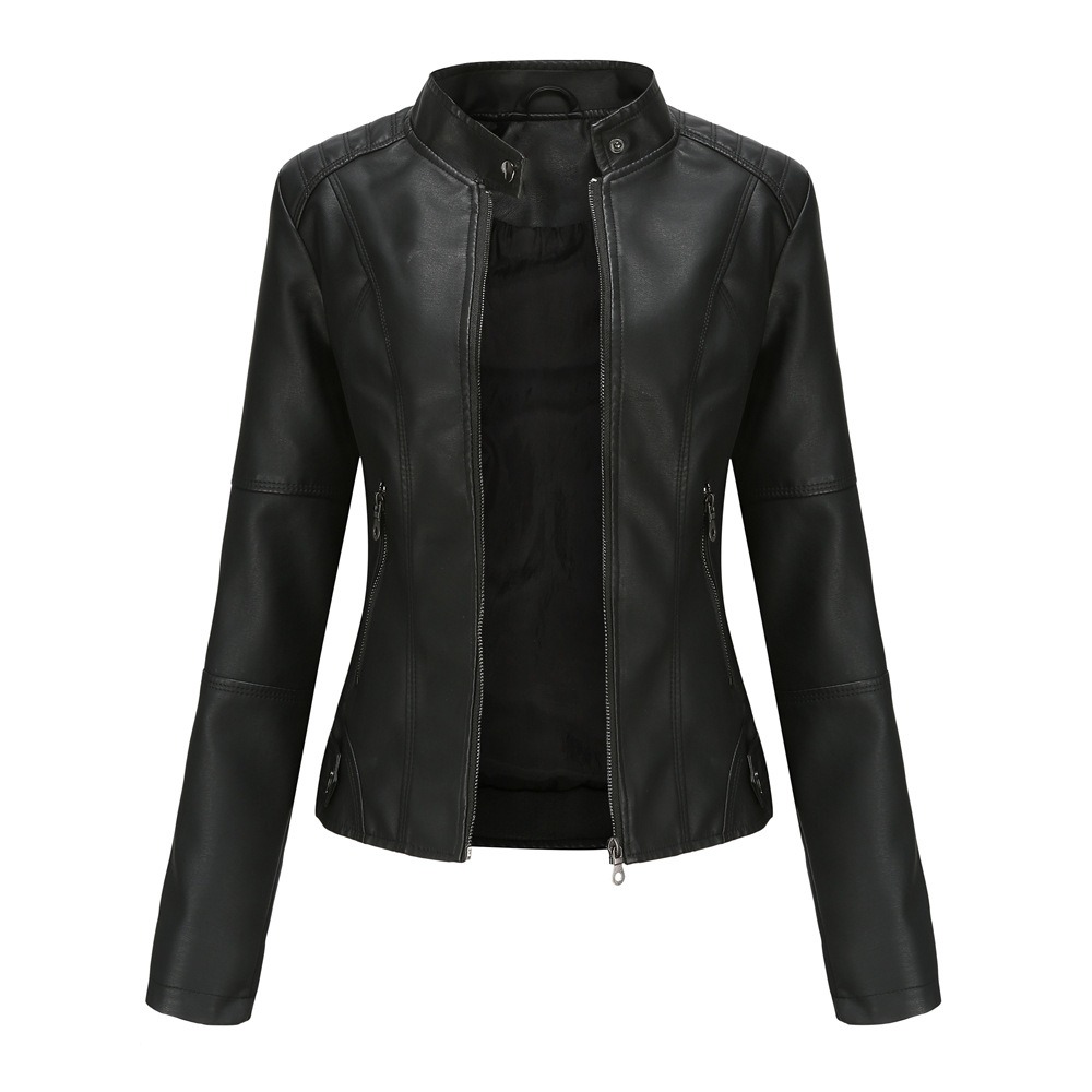 European size women’s leather jacket women’s motorcycle jacket standing collar leather jacket