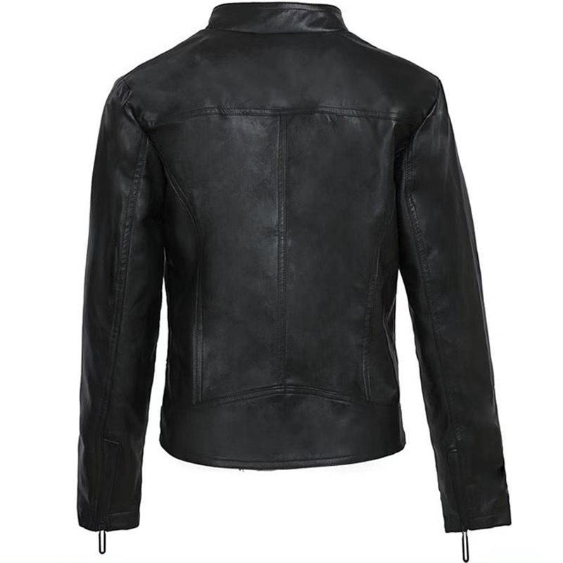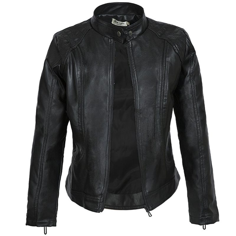 Women Autumn Winter Black Faux Leather Jackets Zipper Basic Coat Standing Collar Biker Motorcycle Outerwear